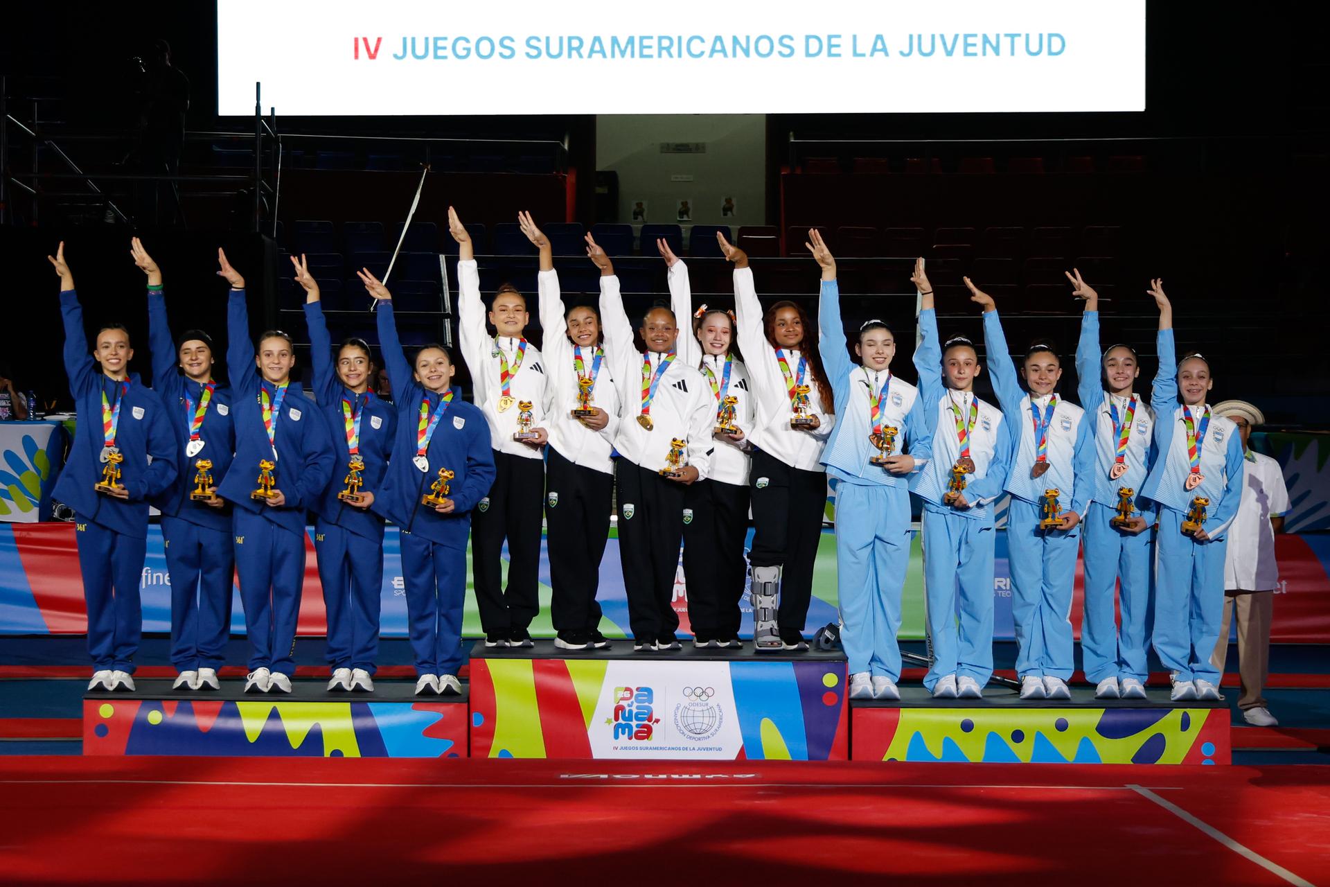 O Time do Brasil ocupou o topo do pódio tanto no feminino quanto no masculino na disputa por equipes da ginástica artística dos Jogos Sul-americanos da Juventude Panamá 2026. Nas disputas desta sexta-feira, 17, o time feminino foi acompanhado por Uruguai e Argentina com prata e bronze. Já o masculino teve a Argentina, prata, e o Equador, bronze ao seu lado no pódio.