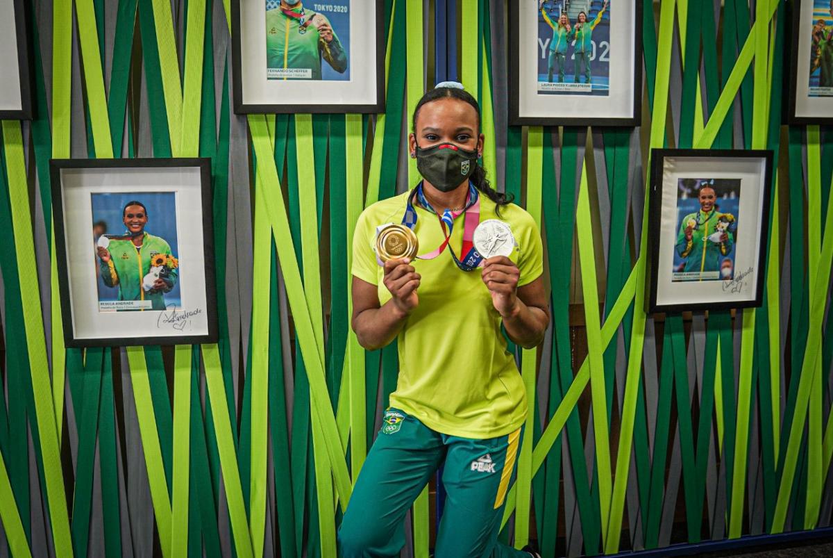 'As medalhas me mostraram que tudo é possível', disse Rebeca na base do Time Brasil