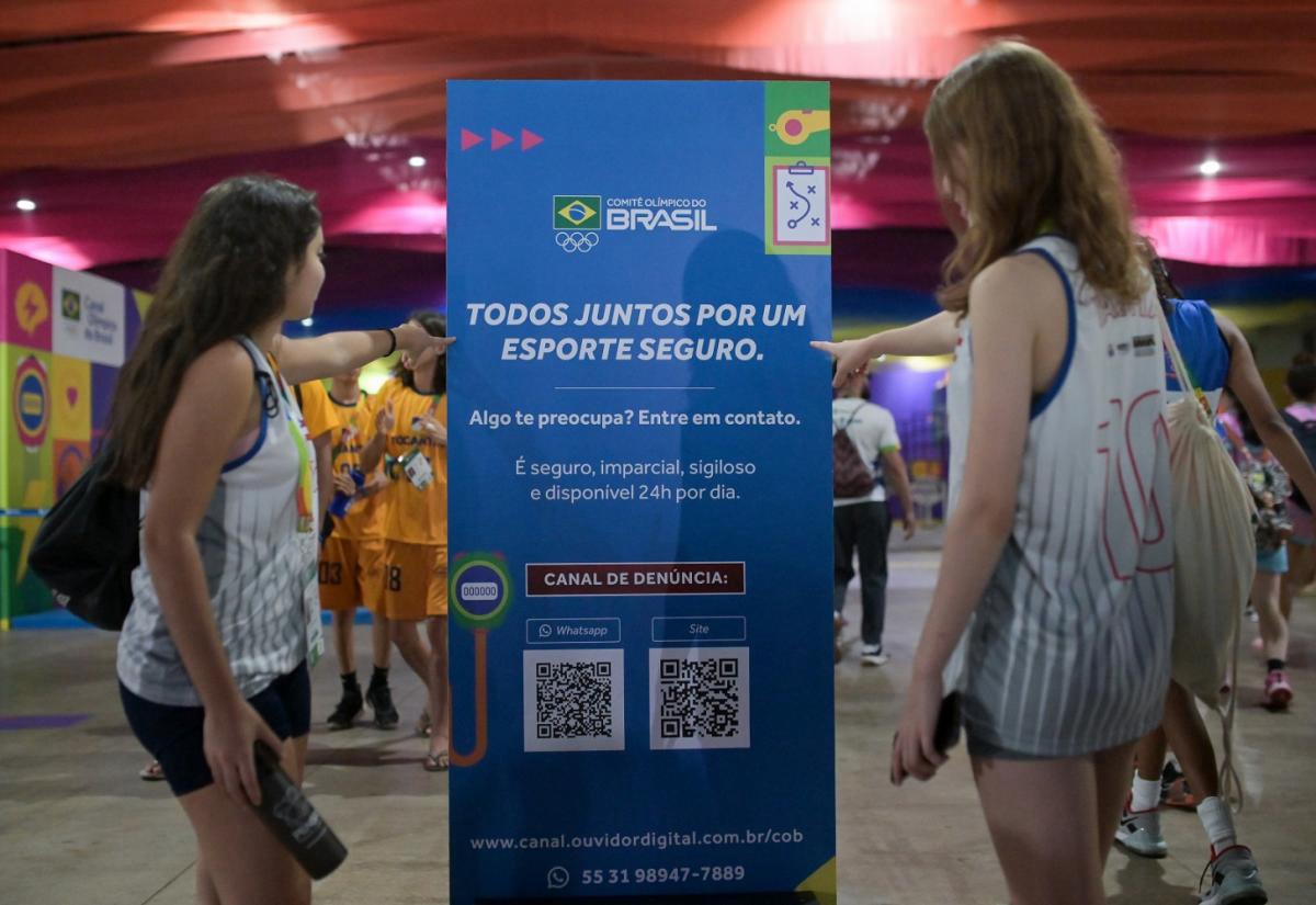 O canal de denúncia do Comitê Olímpico do Brasil está à disposição dos atletas durante os Jogos da Juventude Ribeirão Preto 2023 na busca pela promoção de um esporte seguro. Quem frequenta o Centro de Convenções Taiwan, onde fica localizada a área de convivência das delegações, se depara com sinalizações sobre o mecanismo que visa promover a transparência e a ética no ambiente de trabalho e no Movimento Olímpico.